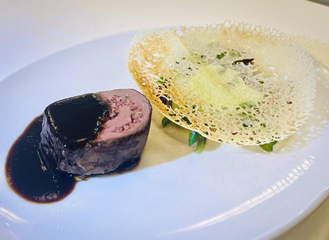 Huvdudrätten Oxfile Braciole som Danyel Couet skapat för den nya menyn består av ört-och citronfylld oxfile, jordärtskockscremé , picklad jordärtskocka, brynt lökmarmelad och pepparkrist.