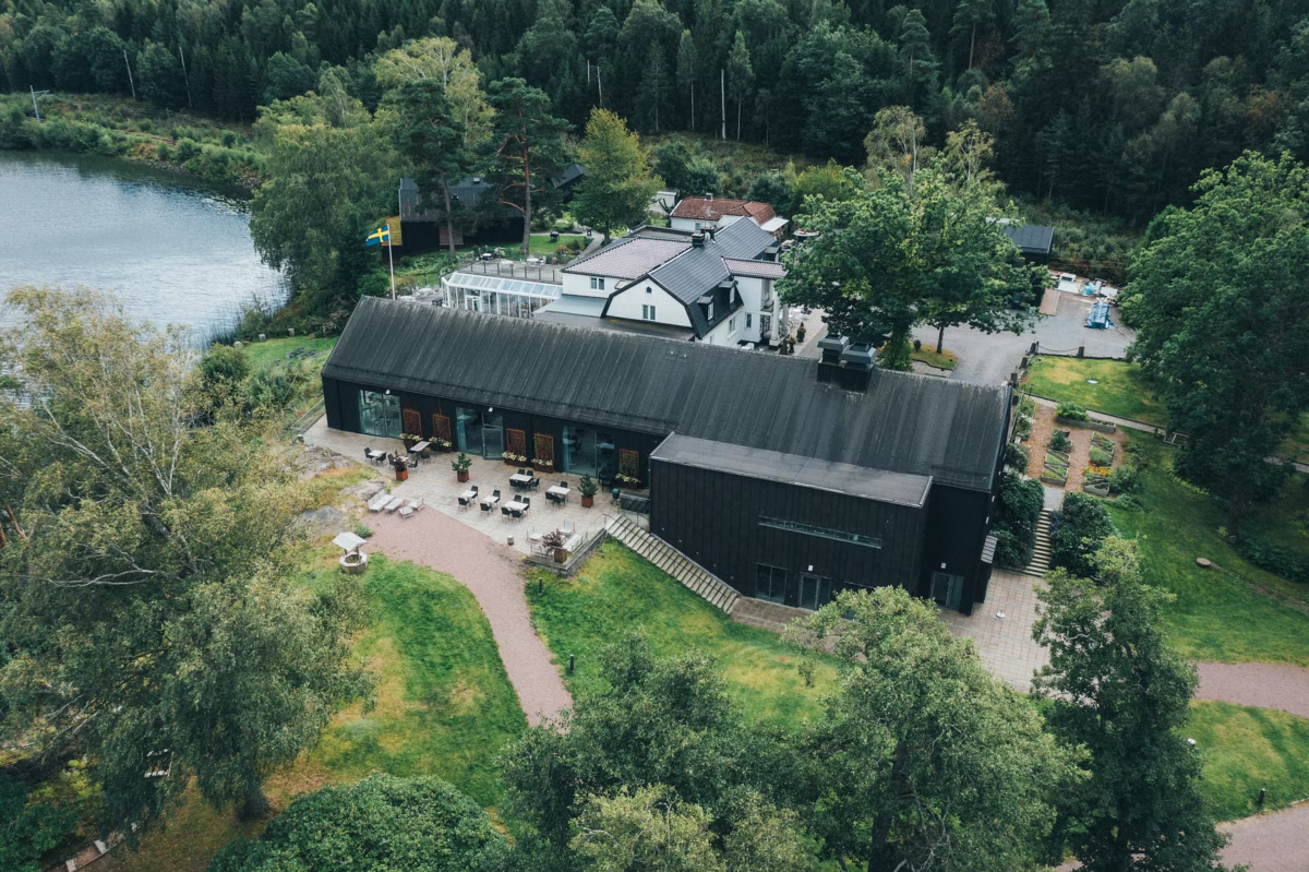 De nya hotellbyggnaderna ligger precis vid strandkanten av Landvettersjön, där naturen har fått styra exteriören. Fasaden är utformad för att smälta in i omgivningen, med sedumtak och varmgrå träpanel som harmoniserar med landskapet. Mellan huskropparna har naturen återskapats med skogsväxter och ängsarter som gynnar pollinatörer och bevarar den biologiska mångfalden.